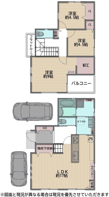 ガスコンロ/三口コンロ/システムキッチン/床下収納/W.INクローゼット/バルコニー/温水洗浄便座/カウンターキッチン/浴室乾燥機/食器洗い乾燥機/全居室収納/クローゼット/オートバス |