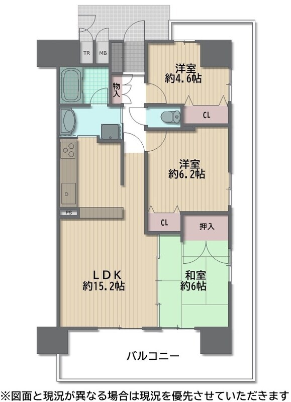 | バルコニー25.96m2 | 現況居住中 |